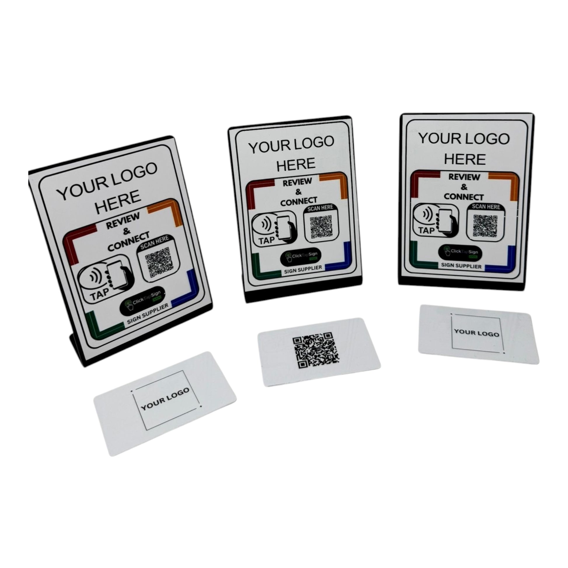 3 Smart & Review and connect A6 sign & 3 NFC Business Card with Custom Logo